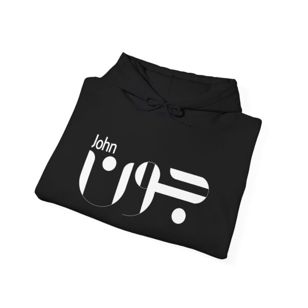 Elevate your casual wardrobe with the “John” Geometric Fusion Calligraphy Hoodie — a perfect blend of art, culture, and comfort. Shaped through modern Arabic, Urdu and Persian calligraphic strokes, this minimalist white-on-black design carries a subtle elegance that speaks volumes.